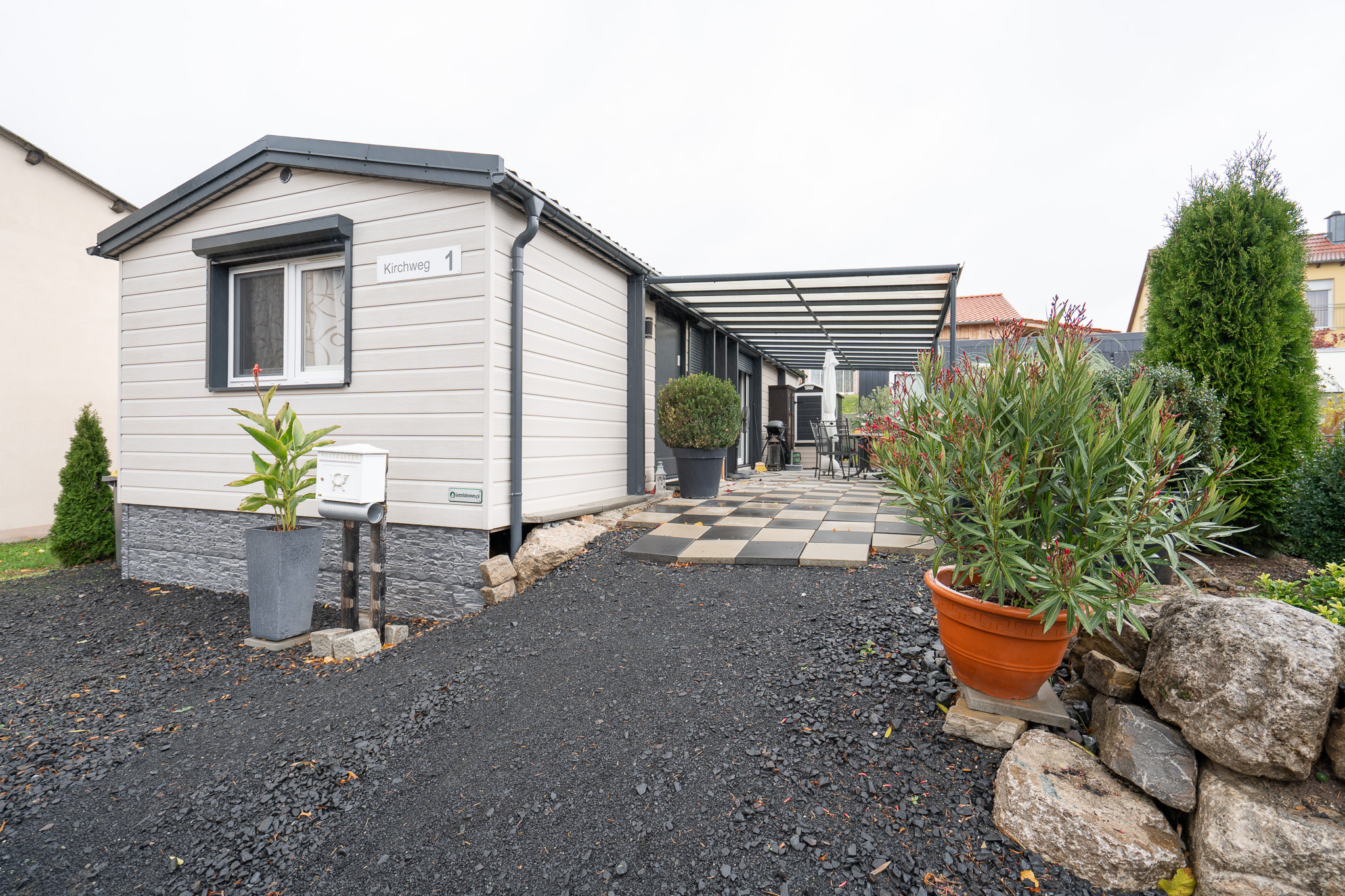 Ein angrenzender separater Container mit ca. 18m² Fläche, bietet wertvollen Zusatzraum, ideal nutzbar als Büro, Lagerfläche oder Waschküche.