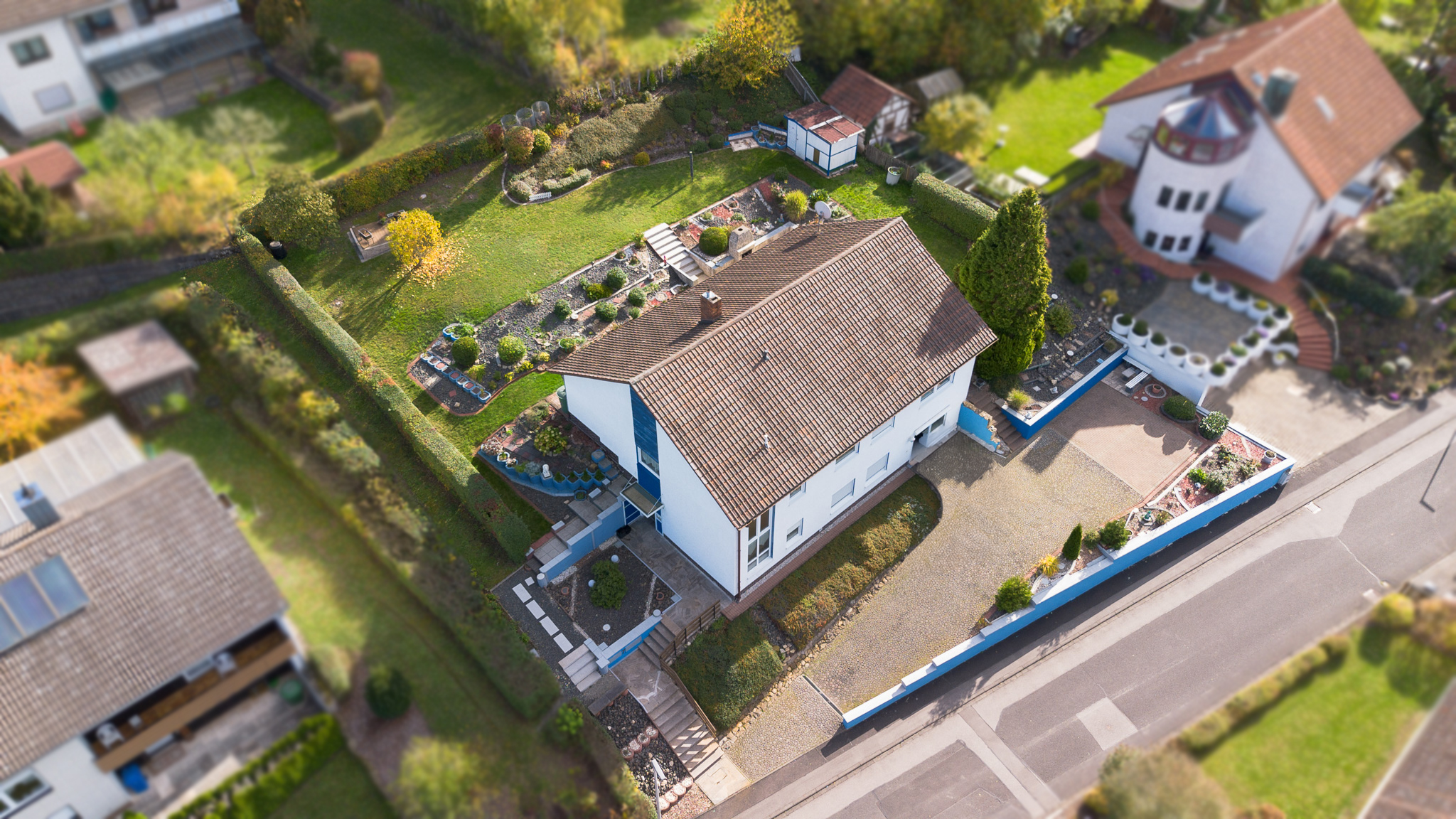 Die leichte Hanglage sorgt für schöne Ausblicke und natürliche Abgrenzung.