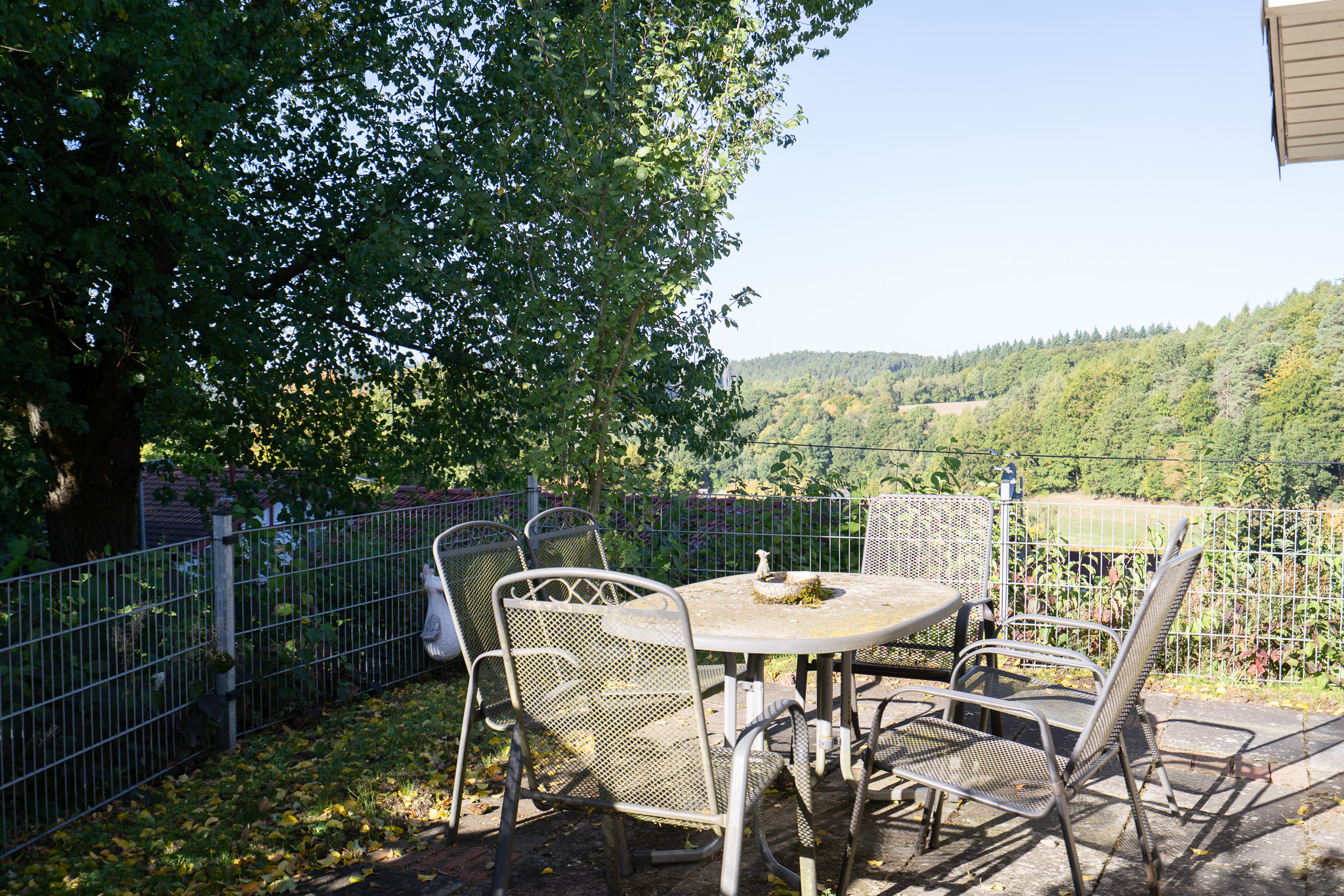 Außenbereich: Terrasse mit Ausblick, kleine Gartenfläche